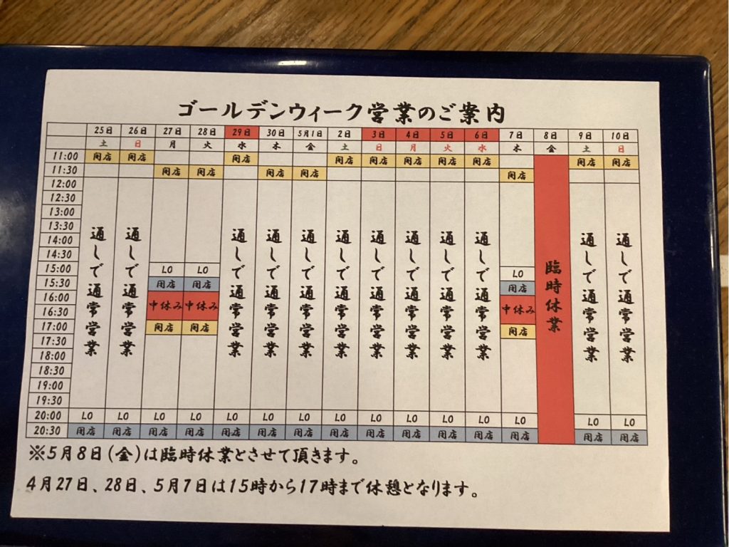 2026.04.13 【麻布十番本店 ゴールデンウィーク営業のご案内】 2026年のGWの営業時間のお知らせです。 GW期間は写真の通り営業いたします。 5月8日(金)は、臨時休業とさせていただいております。 また、4/29(水)〜5/6(水)は、ご予約をお受けすることができません。 ご不便おかけして申し訳ございませんが、ご理解いただけますようお願い申し上げます。